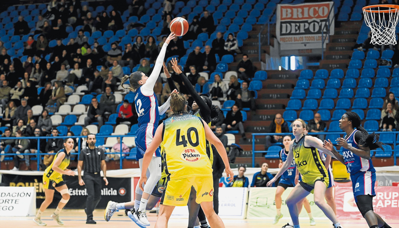 La defensa que desplegó el equipo de Lino López en el segundo acto fue determinante. Combs fue diluyéndose poco a poco y los escasos tiros que concedieron las locales no encontraron acierto. De hecho, el Picken Claret de Carles Martínez apenas anotó cuatro puntos –dos desde la línea de tiro libre–, mientras el Baxi comenzó a mostrar el ritmo que le faltó en los dos últimos partidos. La salida de Soriano le dio frescura al ataque del Baxi, que con dos puntos de Allen (y un 7-0 de parcial) llevó al electrónico la primera gran diferencia (25-16) del encuentro. Los tres minutos previos al descanso fueron la puntilla para las valencianas. Àngela Mataix, que ayer rayó a un gran nivel, sumó cinco puntos para su equipo y el cuarto acabó con un triple de Féquière y otro –el primero de los cinco que acabaría encestando– de Marta Gómez.