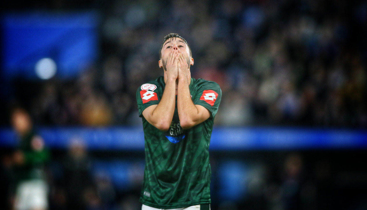 No fue suficiente con que el cuadro verde, entre su empuje y que el Deportivo empezó a reducir el ritmo con el que se había aplicado durante la primera hora de partido, tomase el control del duelo. En este nuevo decorado dispuso el cuadro verde de su mejor ocasión a través de un cabezazo de Jardí, a centro desde la derecha de Carlos Vicente. Pero su empuje se quedó ahí, nada más de provecho.