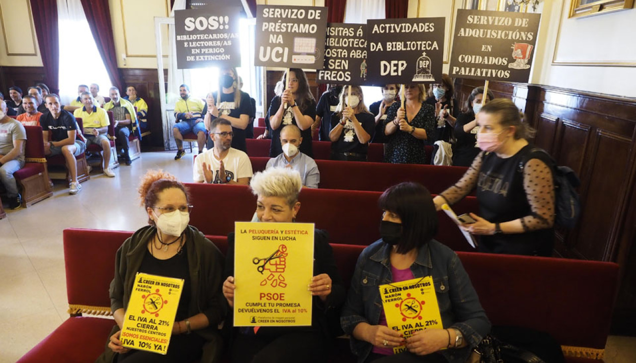 No escuchan, no dialogan y no gestionan. Esas críticas se pudieron escuchar ayer desde el inicio del pleno municipal de fin de mes por parte de los portavoces de los tres grupos de la oposición –PP, FeC y BNG–. Una críticas que se hacían también eco de las quejas de los distintos colectivos en huelga y algunas presentes en el salón de plenos –desde Bibliotecas a jardines, CAMF, percebeiros...– que reclaman desde hace tiempo una solución a sus problemas.