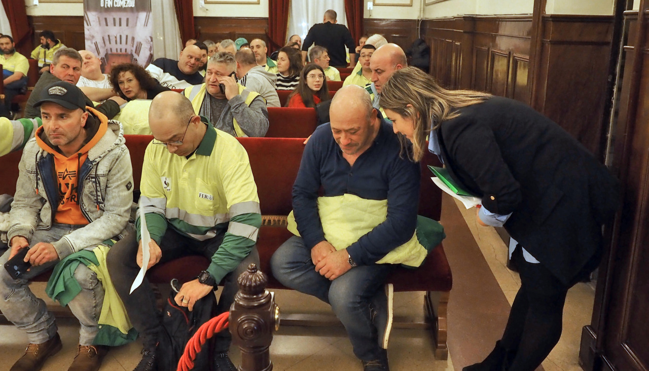 La responsable de Servizos, Ana Lamas, sí se acercó a la bancada en la que se encontraban los trabajadores para hablar con ellos y está prevista una reunión para abordar el tema.