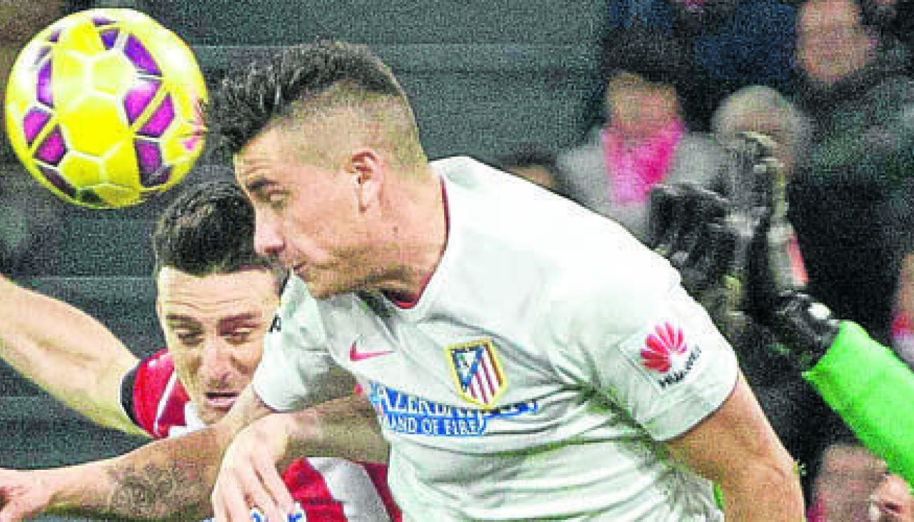 El conjunto colchonero sigue la estela de Real Madrid y Barcelona tras un partido que se complicó en la primera mitad, empató ya en el segundo tiempo en una gran jugada, desniveló a su favor gracias a un penalti más que discutible de San José a Tiago transformado por Raúl García y un resbalón de un rival en el momento previo al 1-3, y cerró en goleada con el jugador francés en claro fuera de juego.