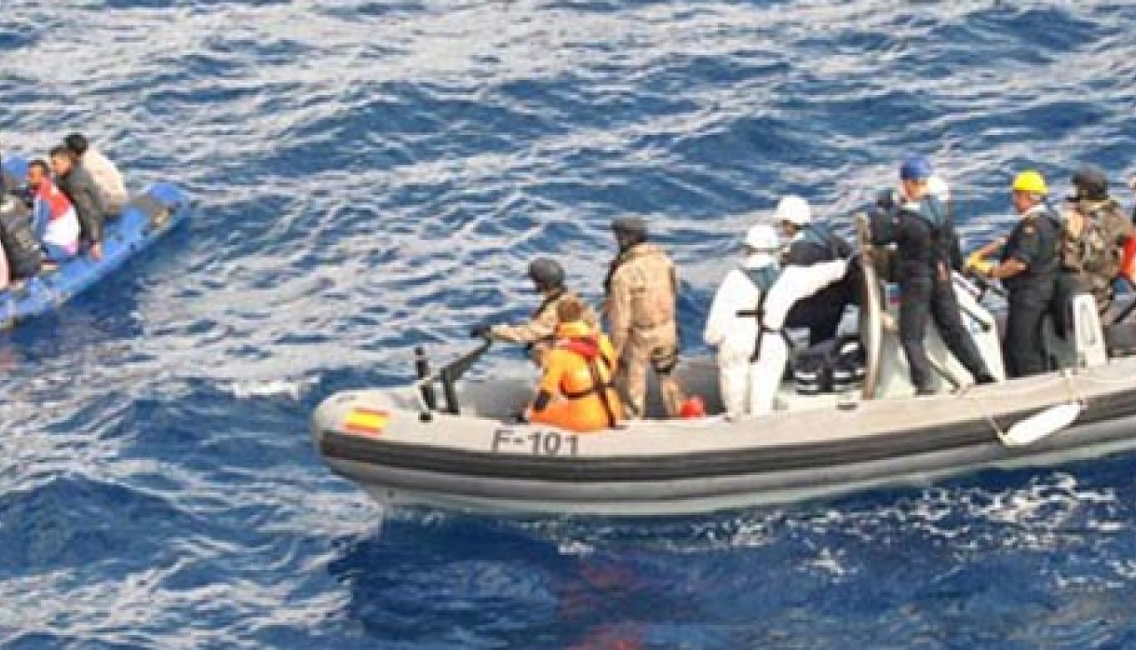 La F-101, comandada por Enrique Delgado y en la que se aloja el estado mayor de la fuerza multinacional que encabeza el contraalmirante Eugenio Díaz del Río, recibió el jueves por la mañana un aviso del Centro de Operaciones de Vigilancia de Acción Marítima –Covam– que informaba, en primer lugar, de la presencia de una posible embarcación con inmigrantes a 40 millas de su posición y, posteriormente, verificaba la existencia de otras dos lanchas más.