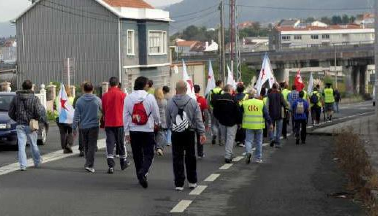 La Confederación Intersindical Galega de Ferrolterra realizó esta mañana la primera de las dos marchas por el empleo que se desarrollarán en la comarca esta semana. Alrededor de un centenar de delegados y afiliados de la central nacionalista, encabezados por su secretario comarcal, Xesús Anxo López Pintos, secundaron una convocatoria que también se celebra en otras localidades gallegas y que reclama la activación de políticas activas de empleo que frenen la continua destrucción de puestos de trabajo. La marcha, que salió desde Navantia Fene, discurrió por los términos municipales de Fene, Neda y Narón hasta la rotonda de Freixeiro. El miércoles tendrá lugar la segunda y última marcha y el sábado tendrá lugar la manifestación en Santiago que culminará este programa de movilizaciones.