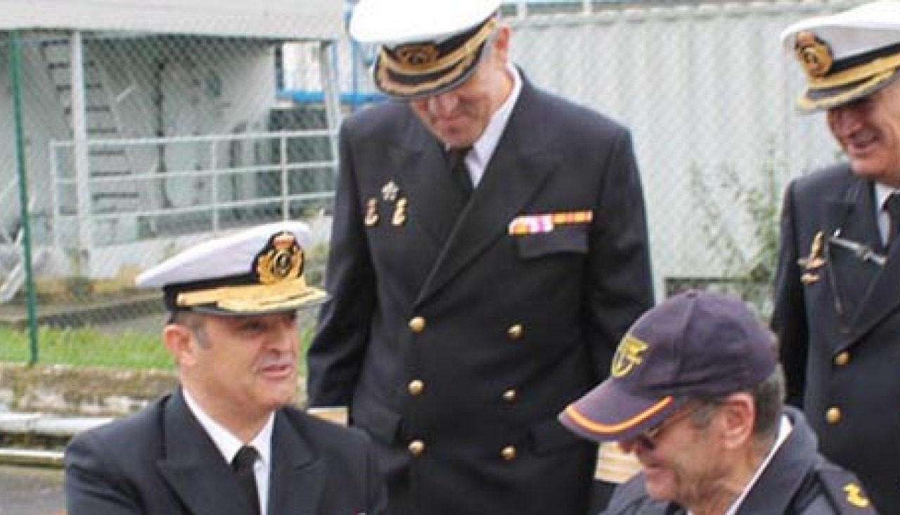 Medio centenar de miembros de la entidad, que en su mayor parte hicieron el servicio militar obligatorio en Ferrol, se desplazaron a la ciudad naval para acudir al acto de entrega, que se celebró en las instalaciones del Servicio de Repuestos de la Armada, en presencia, entre otros, del comandante naval de Gijón, Juan Fontán Suanzes; el coronel de Aprovisionamientos de Ferrol, Juan Carlos Sánchez; el teniente coronel del Servicio de Repuestos, Cristóbal Espiñeira; el coronel médico Antonio Díaz Valdés; y el profesor de la Antonio de Escaño Juan Fernández Hidalgo. El acta de cesión fue firmada por Garat y por el presidente de la asociación de veteranos, Rafael Luis García.
