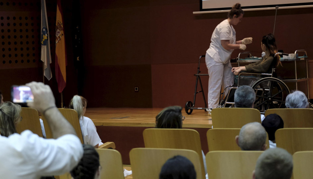 Otro aspecto diferencial fue el teatro mímico para abordar las acciones incorrectas relacionadas con la higiene de manos y ofrecer en su lugar las acciones adecuados, que representó el alumnado del instituto ferrolano en el salón de actos del hospital Arquitecto Marcide. Estuvieron implicados en esta ficción profesionales de todas las categorías ya que la colaboración entre el CHUF y el centro docente es una constante en los últimos años.