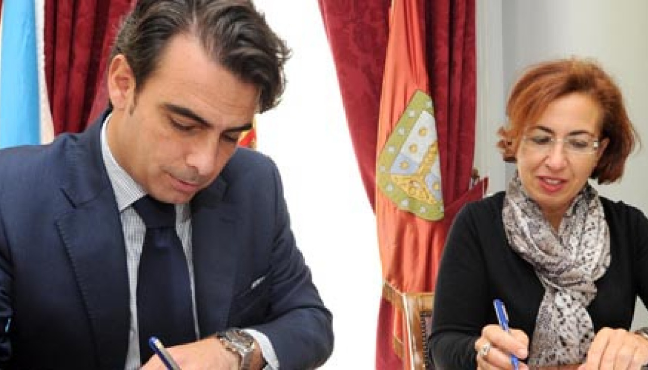 El presidente de la Diputación, Diego Calvo, y la jefa provincial de la Dirección General de Tráfico, María Victoria Gómez Dobarro, firmaron ayer un convenio que supone la adhesión del organismo provincial a un acuerdo que ya suscribió la Federación Española de Municipios y Provincias y que tiene como objetivo sentar las bases para facilitar la transmisión de datos y el acceso a los nuevos registros de la DGT.