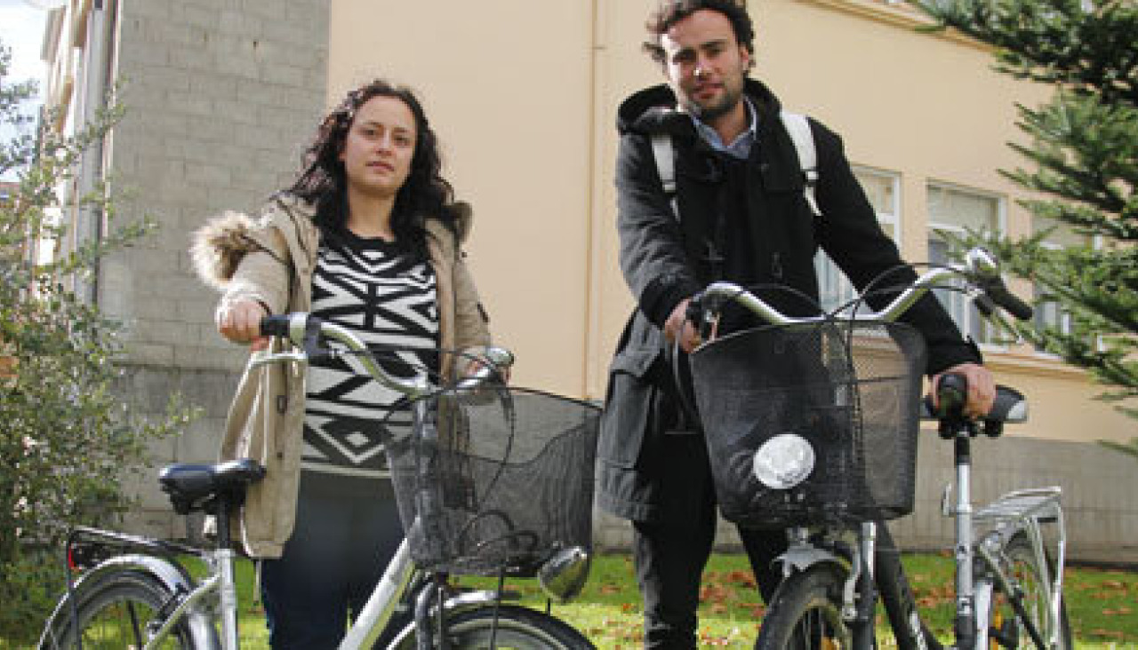 Ambos, naturales de Lugo, residen durante el curso escolar en el barrio del Ensanche, desde donde diariamente se desplazan al campus de Esteiro para asistir a clases. Al no disponer de coche, vieron en esta iniciativa una buena oportunidad no solo para desplazarse al campus, sino por toda la ciudad. “Es el primer año que solicito el servicio de préstamo de bicicletas y me parece una buena iniciativa”, comenta la joven. “Es muy cómoda para moverte la ciudad”, añade Faustino. Para ellos, la lluvia no es impedimento para subirse a la bicicleta y pedalear, gracias a la ropa y material existente en la actualidad para protegerse.